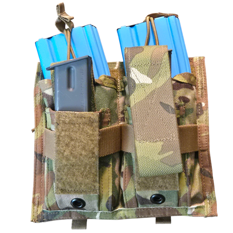 Here is your chance to own some rare and highly sought after Paraclete pouches. These hold two 30 round M16 magazines side by side with two 9mm pockets on the front of the pouches, providing a low-profile solution for magazine stowage.